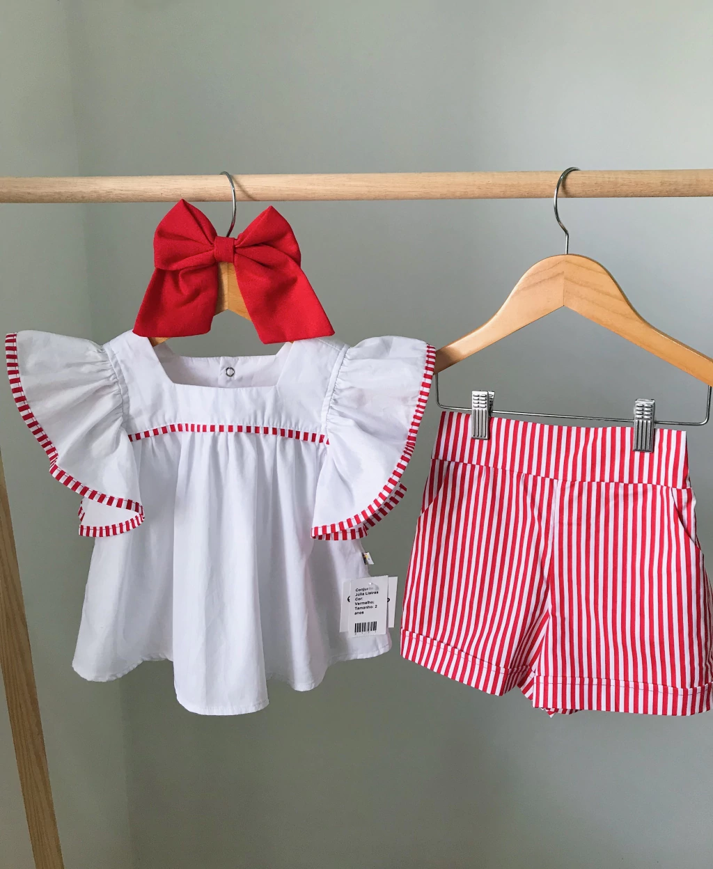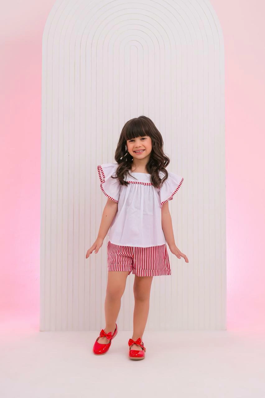 Apresentamos o charmoso Conjunto Listras Batinha + Shorts, a combinação perfeita de conforto e estilo para as pequenas fashionistas! Confeccionado em tricoline 100% algodão, este conjunto é leve e super confortável.