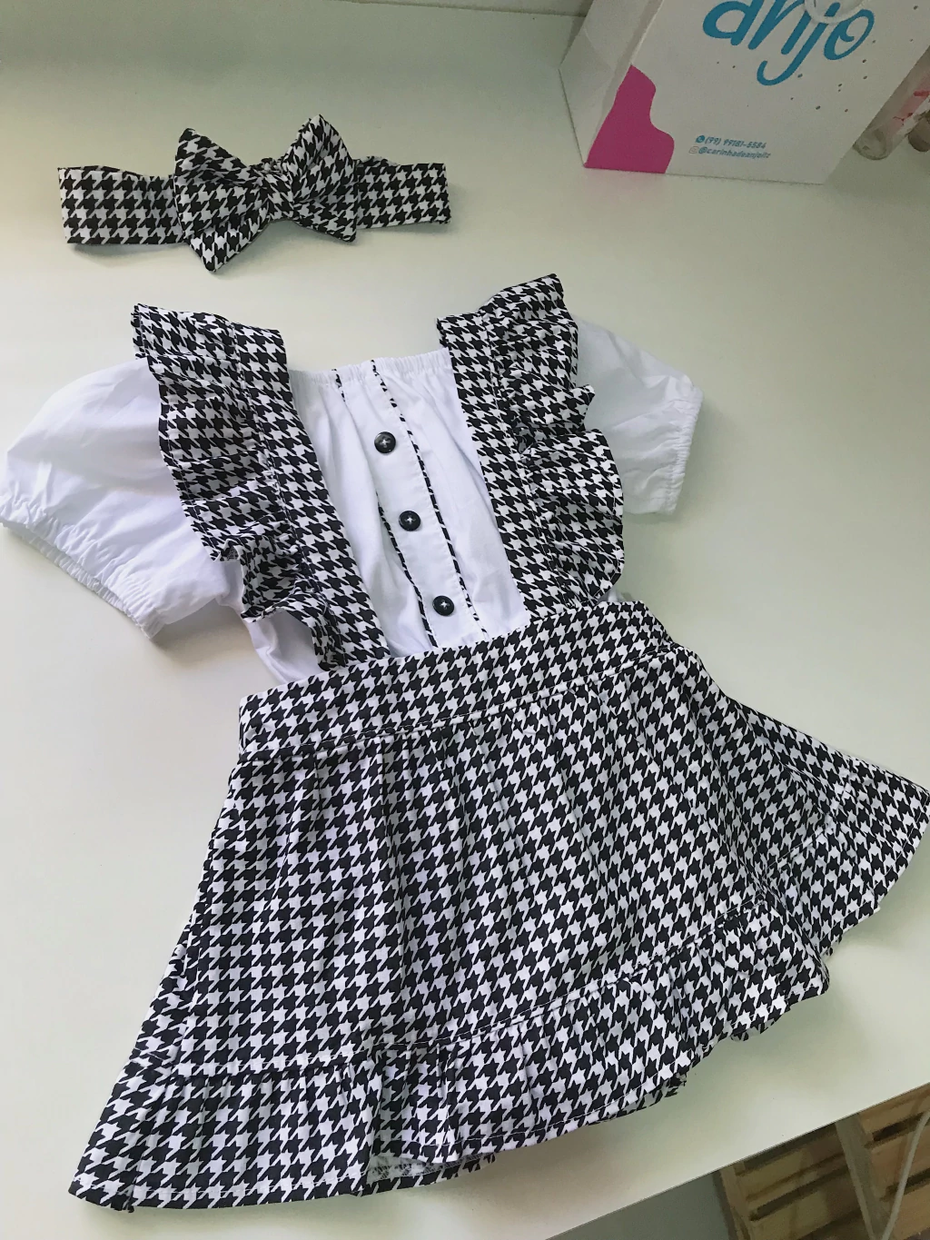 Ideal para festas, passeios ou simplesmente para um dia divertido, a Salopete Xadrez com Blusa Ciganinha é a escolha perfeita para deixar sua pequena estilosa e confortável em qualquer situação!
