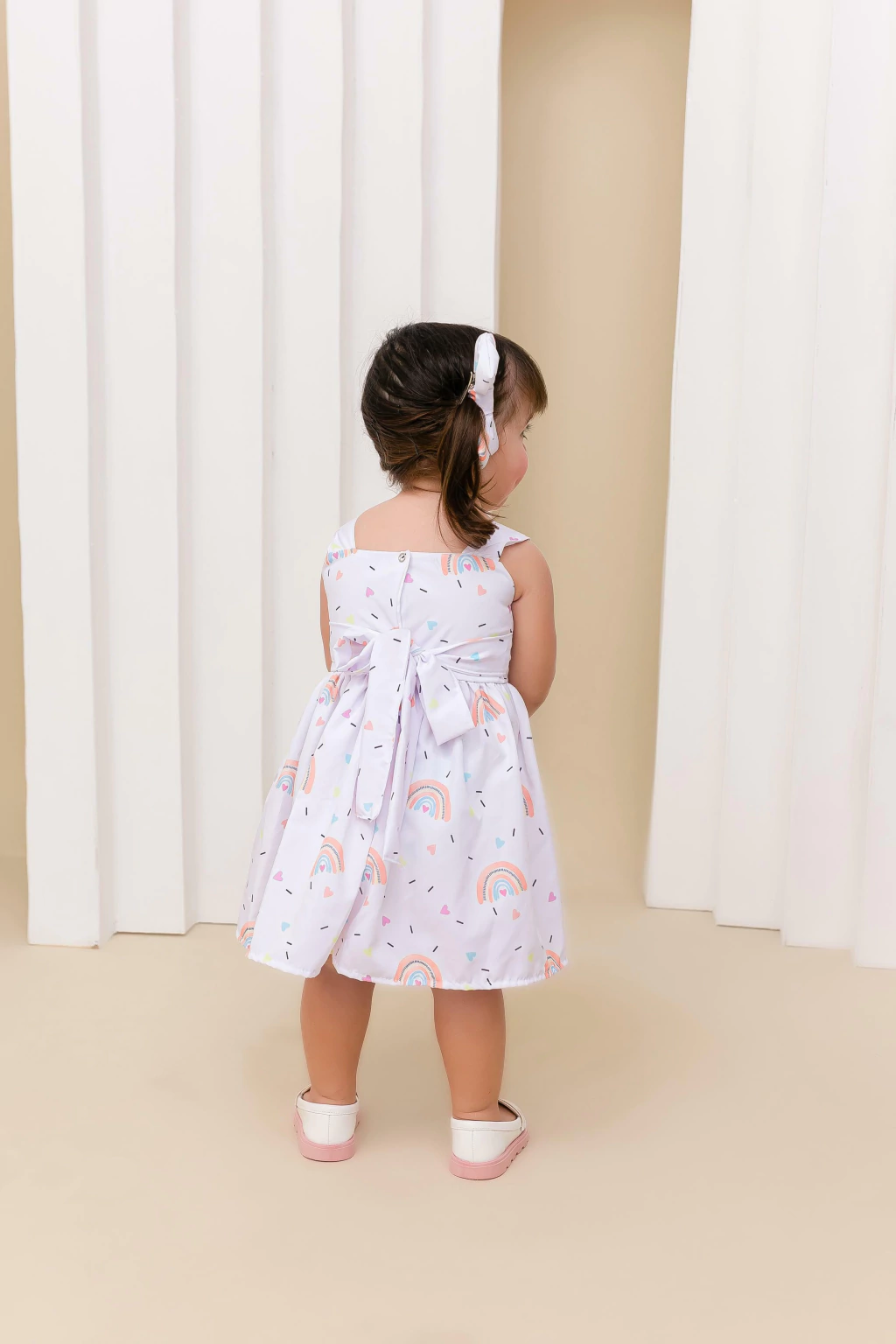 Apresentamos o Vestido Menina Botões Arco-íris, a escolha perfeita para pequenas cheias de charme e energia!